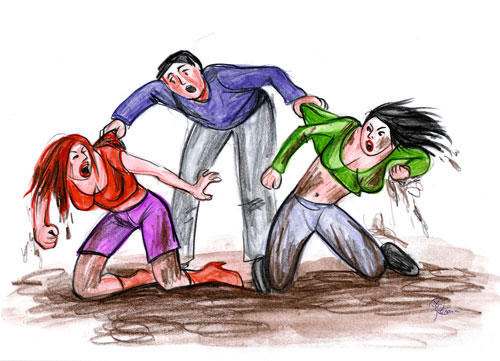Este incurcat, forta infuriatelor femei il depaseste si il ameteste