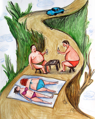 @ Alex, Bucuresteni, da, ca sunt disperati sa fuga de ciment la un gratarel pe marginea drumului si o prajeala adevarata la soare. [Translate]