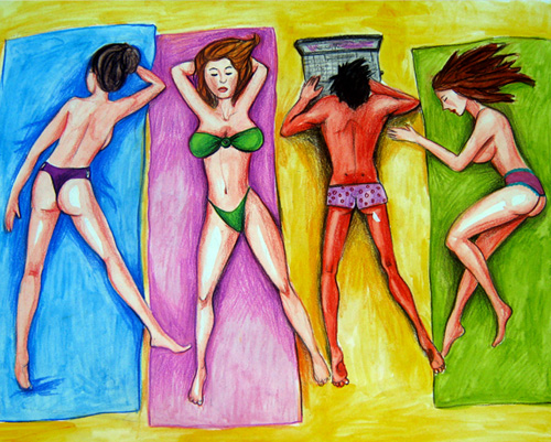 This guy is a workaholic. No matter what was happening around him, he had always something important to do at his laptop. So, he spent some days on the beach, and when he got home he didn’t remember anything about his holiday, why he was burned on his back, and who stood so close to him.