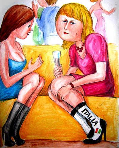 One day I was preparing myself to go to a party, very elegantly dressed. I put on my make up, my jewelery and I made myself beautiful. But when I wanted to put on my shoes, I discovered that I was wearing my Italy Socks. And I thought: how it would be, if I go to the party with these socks on my feet? Maybe I could start a trend. What do you say about it?